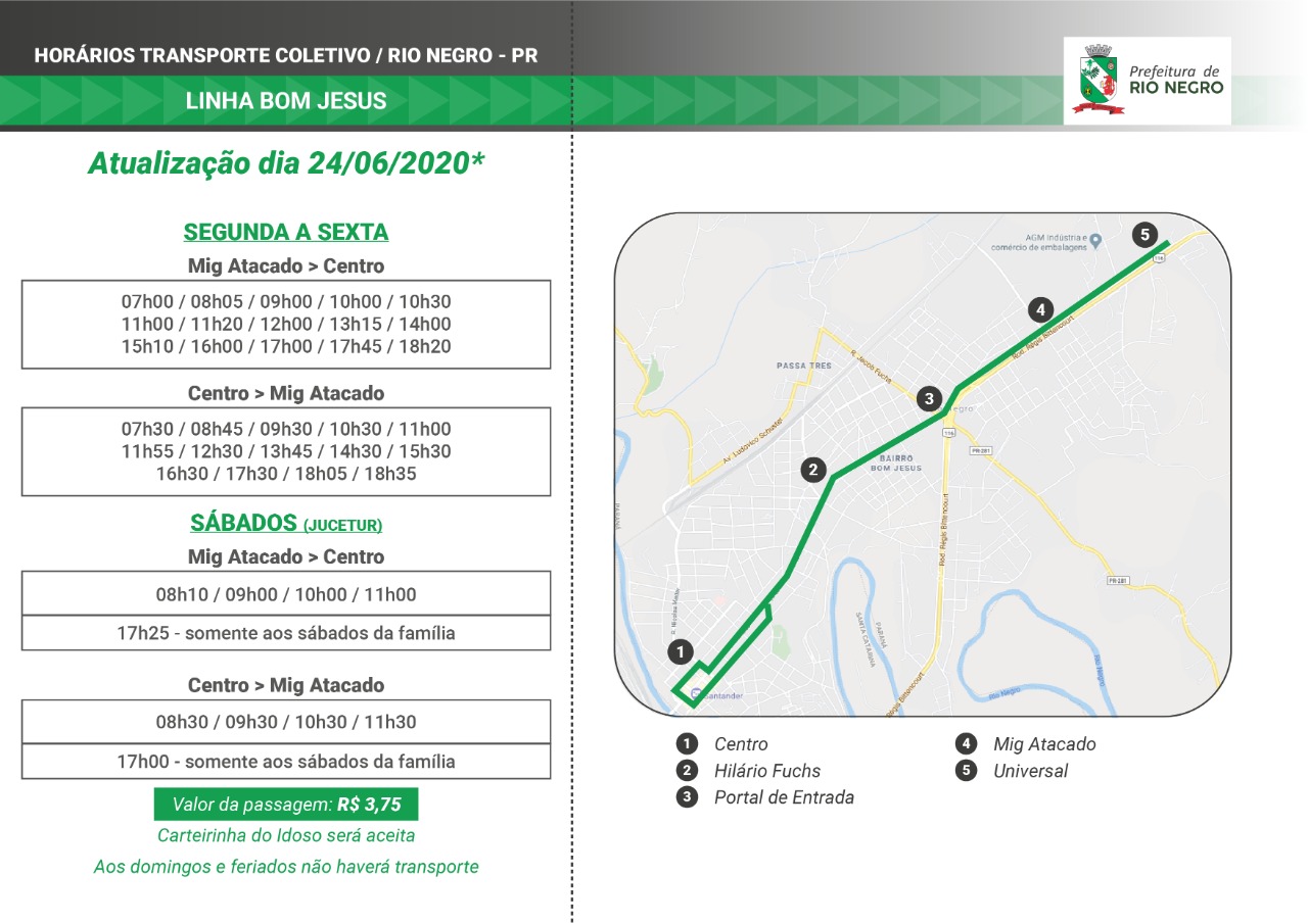 Durante o domingo não há o serviço de transporte. Confira as rotas e horários: