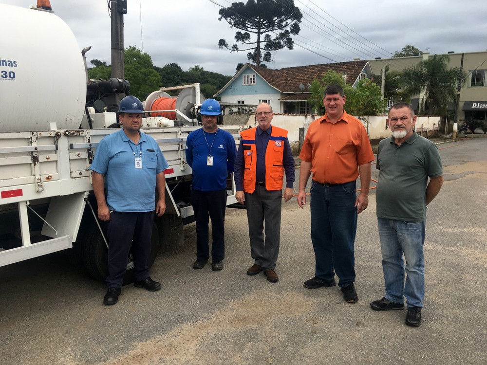 Um caminhão hidrojato da Sanepar está sendo utilizado para a limpeza; outro caminhão com maior potência chegará amanhã ao municÃpio para intensificar ainda mais esse importante trabalho.