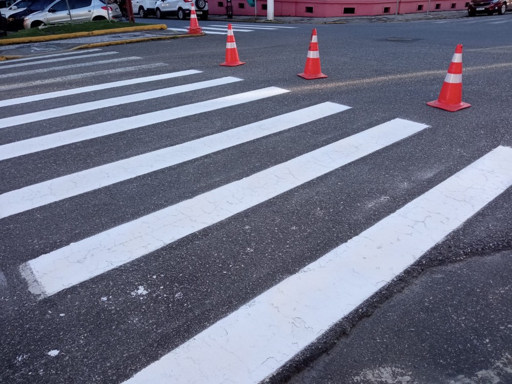 Nesta semana houve a pintura das sinalizações horizontais e das faixas de pedestres em diversos pontos da cidade. Parte do trabalho é realizada antes do amanhecer ou durante o domingo para não prejudicar o fluxo do trânsito.