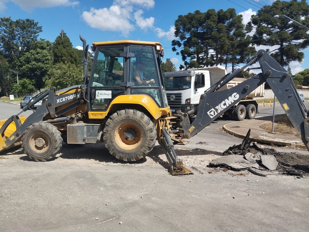Na tarde desta quarta-feira a Prefeitura de Rio Negro iniciou as obras de recuperação da pavimentação de ruas do bairro Bom Jesus, atendendo às solicitações da população local.