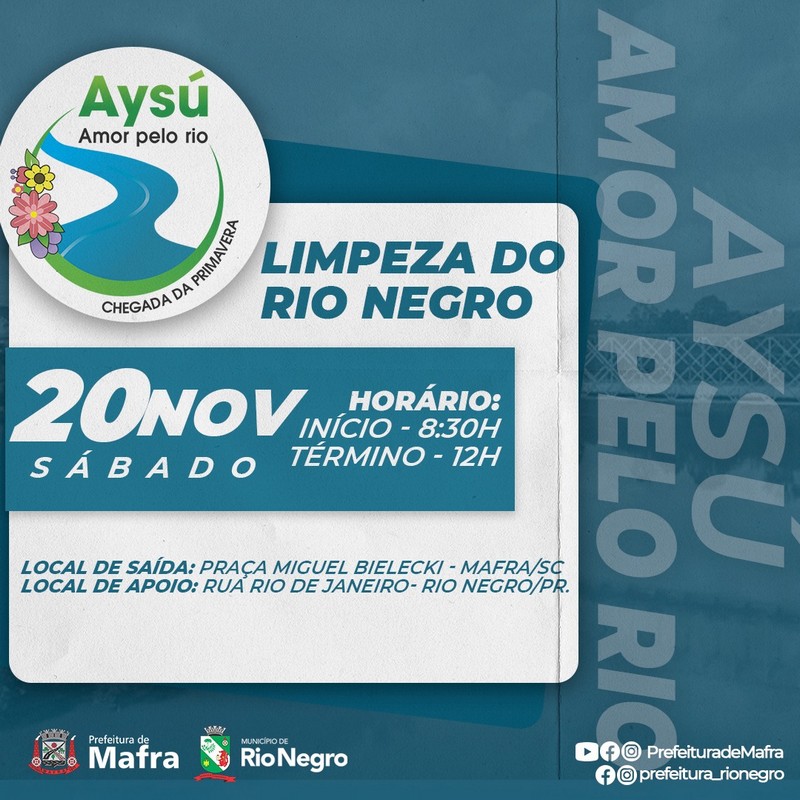 Tudo pronto para o evento de limpeza do rio Negro. Neste sábado, dia 20, a partir das 8h30 até às 12 horas, voluntários e apoiadores se unem para este evento em prol do meio ambiente. A ação, denominada “Aysú – Amor pelo rio Negro” visa a conscientização para a importância da proteção da mata ciliar e da necessidade de preservação do meio ambiente e do descarte correto de resíduos.