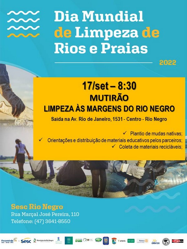 O evento está sendo organizado pelo Sesc Rio Negro, com o apoio da Prefeitura de Rio Negro e em parceria com diversas entidades. A ação faz parte da programação do Dia Mundial de Limpeza de Rios e Praias (International Coastal Cleanup), evento mundial realizado anualmente no terceiro fim de semana do mês de setembro.