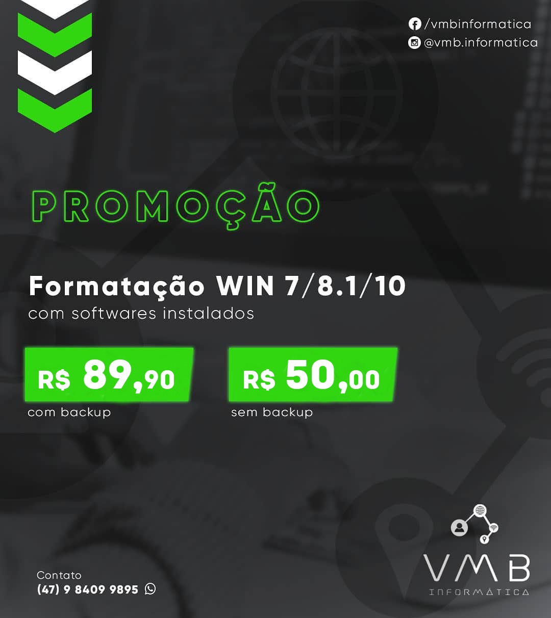 Precisa formatar seu computador ou notebook? Aproveite! Esta promoção é por tempo limitado. Atendimento em Riomafra e região. Contato: 47 9 8409-9895 (WhatsApp)