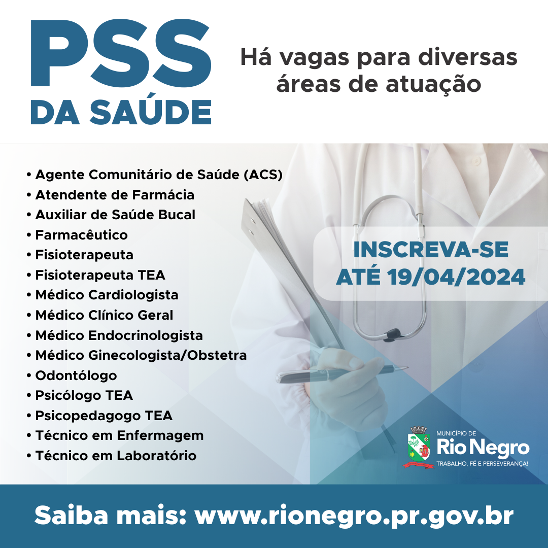 A Secretaria Municipal de Saúde de Rio Negro abriu um novo Processo Seletivo Simplificado (PSS) com vagas para diversas áreas de atuação:
