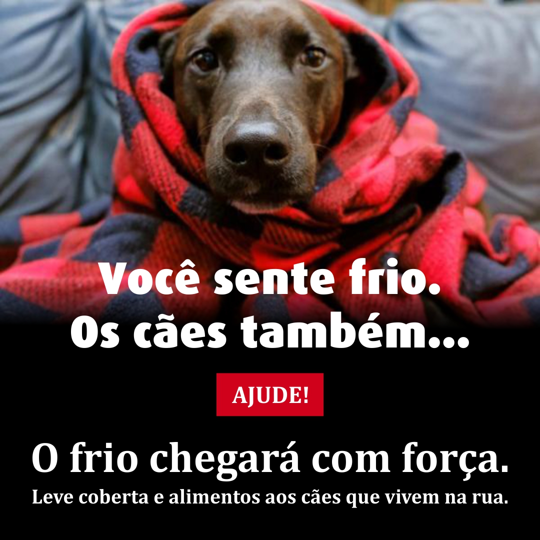 Não feche os olhos para a realidade! Você sente frio, os animais também… Os abrigos estão lotados, mas você também pode ajudar. Seja um protetor. Ofereça um lar temporário até achar uma família que queira adotar o animal. Ou então leve coberta e alimentos ao cão que você conhece e vive na rua.