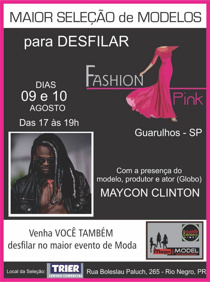 Estando em nossas cidades para esta atividade, Maycon fará uma grande seletiva de novos modelos para desfilar no Fashion Pink e desta forma prepará-los para o mercado de trabalho.