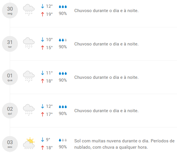 Confira a previsão para os próximos dias em Rio Negro e Mafra: