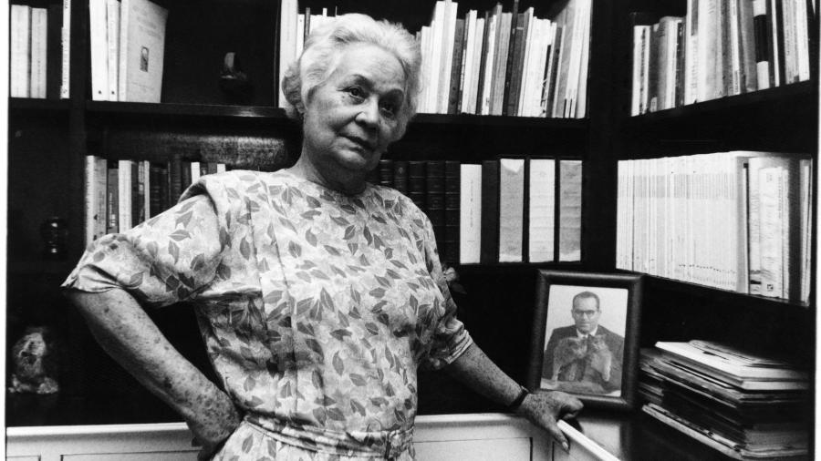 Aracy Moebius de Carvalho Guimarães Rosa em seu apartamento em Copacabana, em 1992. Imagem: Luciana Whitaker/Folhapress