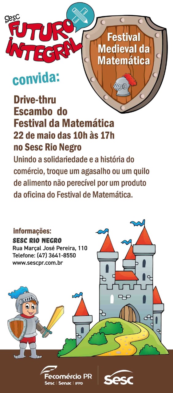 Vista sua armadura, sua coroa, seu vestido e venha participar da feira medieval. Esta atividade é resultado das ações desenvolvidas com os alunos do projeto de contraturno escolar Futuro Integral. Será em formato drive-thru, seguindo os protocolos de segurança e higiene.