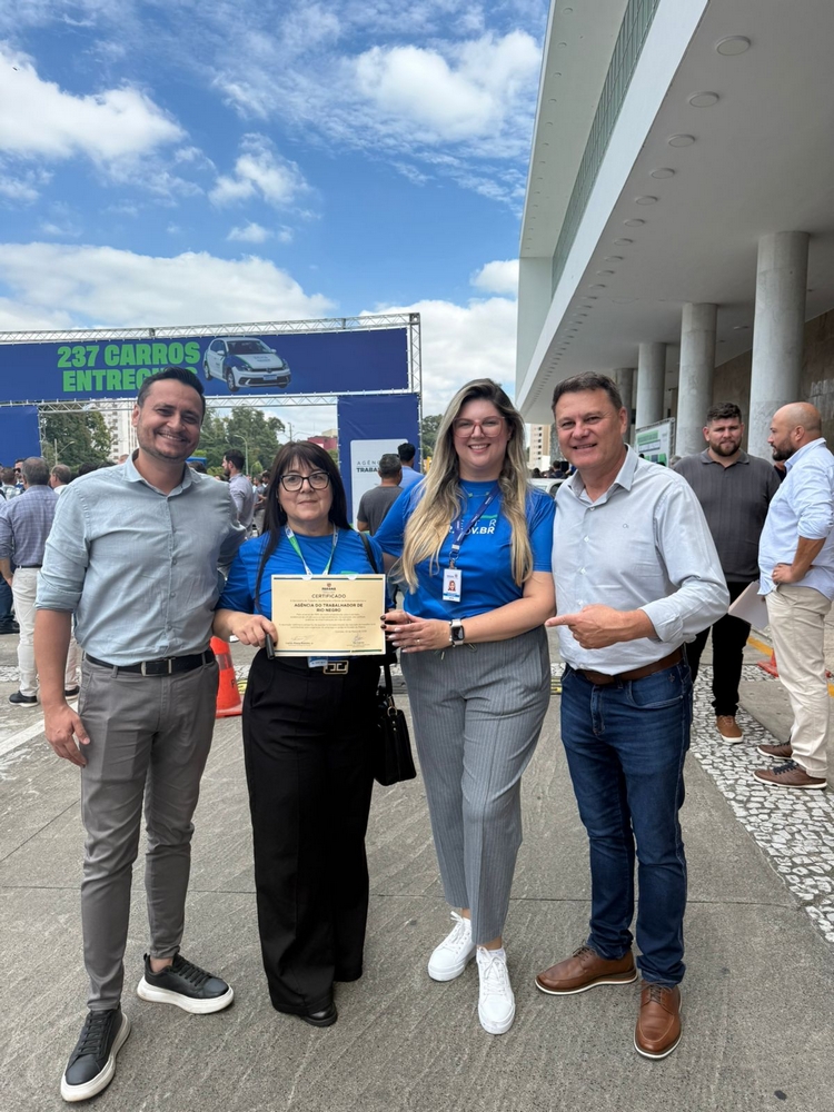 Durante o evento em Curitiba o SINE de Rio Negro também recebeu um certificado que reafirma que a agência atingiu todas as metas em 2025. Neste início de 2026 o município de Rio Negro está na primeira colocação na Região Metropolitana de Curitiba com a meta de recolocação profissional.