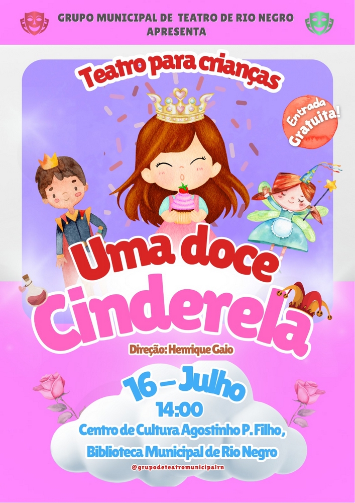 Para deixar as férias escolares ainda mais divertidas, nesta quarta-feira o Grupo Municipal de Teatro de Rio Negro apresentará o teatro para crianças “Uma Doce Cinderela”, com direção de Henrique Gaio.