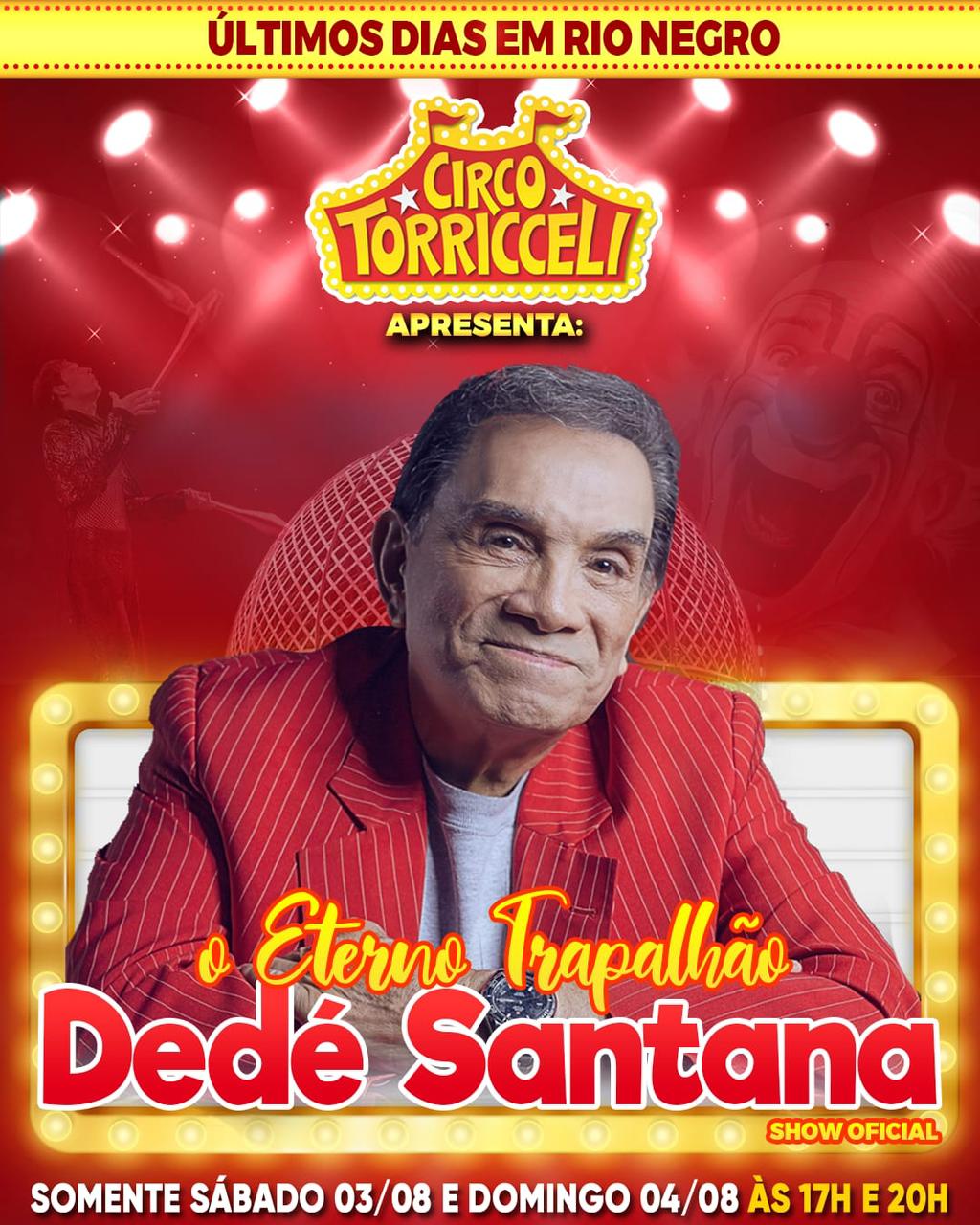 No sábado e domingo terá apresentação especial com Dedé Santana, o eterno trapalhão, às 17h e 20h.