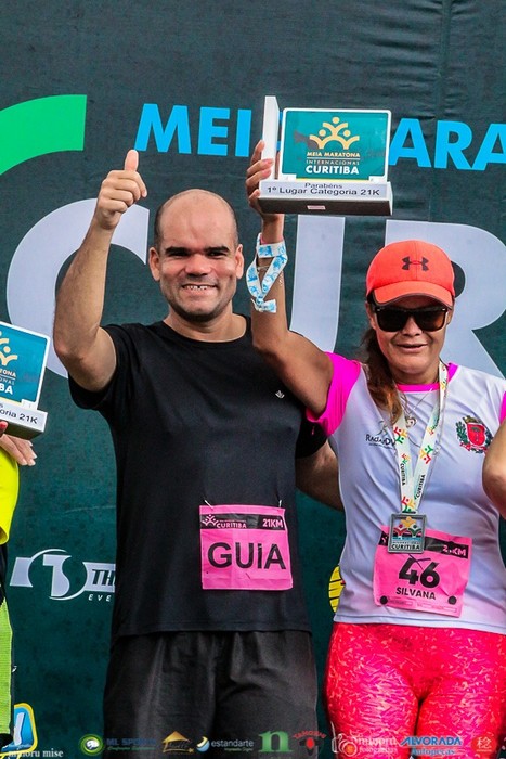 Entre os participantes estava o ultramaratonista riomafrense Sérgio Rodrigo da Costa Pires, que também é Sargento no 5º RCC. Desta vez o atleta teve uma experiência nova: foi guia de uma deficiente visual durante toda a prova dos 21 km. Silvana Rosa costuma participar de várias meias maratonas e desta vez teve o atleta riomafrense como seu guia. Juntos, Sérgio e Silvana conquistaram o 1º lugar na Categoria 21 km.