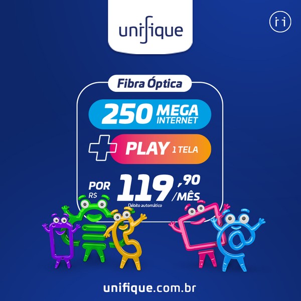 Atualmente a Unifique oferece Internet de 250 mega + Play por apenas R$ 119,90. Acesse o site e conheça todas as ofertas: https://unifique.com.br/para-voce