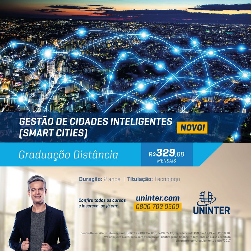 O CURSO QUE VOCÊ QUER E QUE O MERCADO PRECISA. O mercado de trabalho para os profissionais de Gestão de Cidade Inteligentes (Smart Cities) está em órgãos públicos da administração municipal, estadual e federal, institutos de planejamento urbano, órgãos de pesquisa, empresas públicas e privadas voltadas a projetos urbanos, bem como na área acadêmica. Você pode atuar como gestor, diretor, gerente, assessor de órgãos da administração direta e indireta, bem como dos poderes executivo, legislativo e judiciário, e consultorias na área de gestão urbana. Venha para a Uninter.