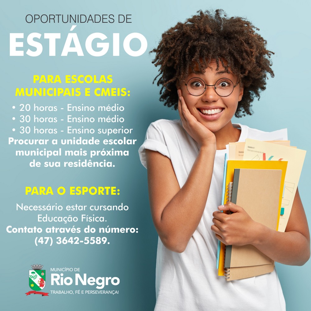 A Prefeitura de Rio Negro dispõe de vagas de estágio para atuação na Secretaria Municipal de Educação e Esportes.