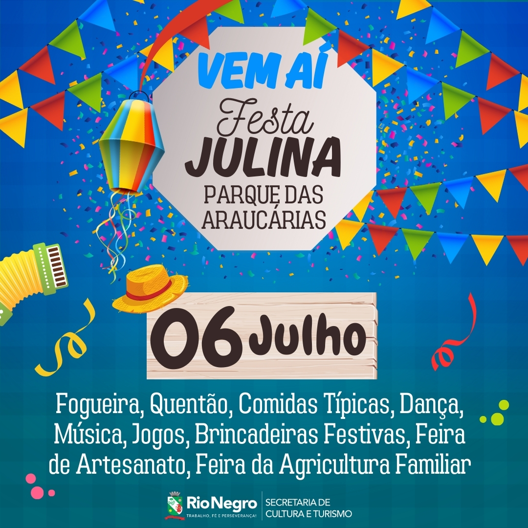 No dia 06 de julho acontece a tradicional Festa Julina de Rio Negro. Neste ano a festa será realizada no Calçadão Milton Wittig Bueno, ao lado do Parque das Araucárias (Parque Ambiental Sesc Rio Negro), no bairro Estação Nova.