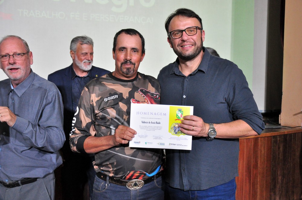 Uma importante solenidade de reconhecimento a viticultores de Rio Negro foi realizada na noite desta segunda-feira no Cine Teatro Antonio Cândido do Amaral, na Prefeitura. Mais de 30 produtores rurais foram homenageados.