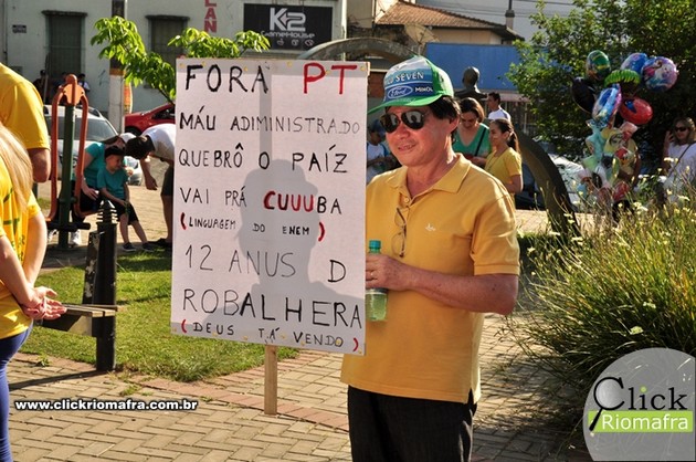 Gostei dos comentários do Paulo e da Sandriana.Os manifestantes deveriam pesquisar sobre a veja e a globo. Aécio Neves pagou uma divida milionária, em dólares da globo. A mídia está comprada. Só passsam o que os coxinhas querem. Leiam Carta Capital as matérias da corrupção de outros partidos. Todo governo tem corruptos, só não pode generalizar e acreditar no que a midia do plim-plim passa. Tem que filtrar.Os corruptos estão sendo presos. O que está se gastando com a investigação da lava -jato está provocando mais crise econômica ainda. Pesquisem o que Requião fala sobre isso e prova. Deveriam ir pra rua cobrar o dinheiro público que alguns partidos fazem sumir…cobrar que os vereadores façam o que prometeram pela cidade, e não só ficar dando nome de rua….deveriam cobrar mais saúde e educação.E enxergar que a miséria diminuiu…mas isso, com certeza incomoda, pois os ricos agora tem que ocupar os mesmos espaços que os mais pobres, e isso, eles jamais imaginariam que ia acontecer! Acorda Brasil, Acorda pra verdade, que infelizmente está escondida porque os poderosos não deixam transparecer!
