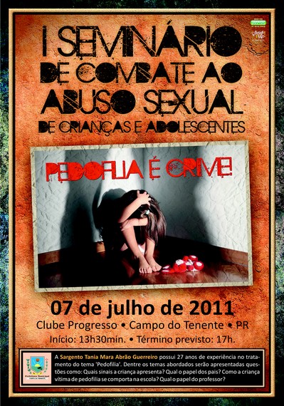 Com os objetivos de traçar novas ações de prevenção e combate ao abuso sexual contra crianças e adolescentes (Pedofilia), as equipes do Departamento Municipal de Assistência Social e o CRAS (Centro de Referência e Assistência Social), promoveram na última quinta (07/07), o I Seminário de Combate ao Abuso Sexual de Crianças e Adolescentes. O evento ocorreu durante toda a tarde, no clube Progresso, e contou com as presenças de autoridades municipais e estaduais e diversos profissionais da área de assistência social da região. O auge do evento foi a palestra da renomada policial militar: sargento Tânia Guerreiro, que possui 27 anos de experiência no tratamento do tema: “Pedofiliaâ€. Dentre os sub-temas debatidos, estavam questões como: Quais os sinais que uma criança abusada apresenta; qual o papel dos pais, dos professores e como a criança vÃtima de pedofilia se comporta na escola.