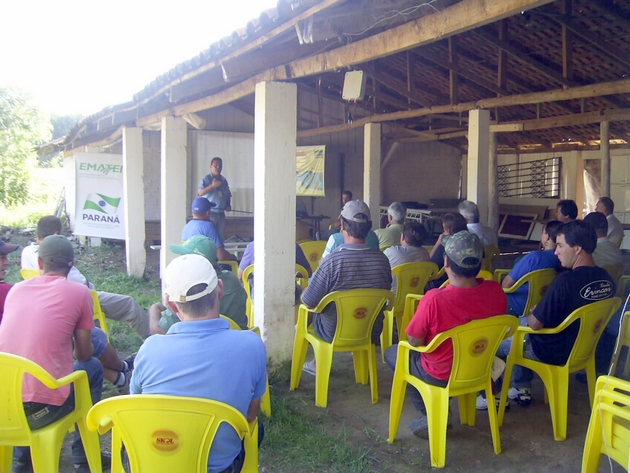 A Emater de Campo do Tenente em parceria com a Secretária de Agricultura e Meio Ambiente Municipal realizaram no último dia 19 de abril uma tarde de campo na propriedade do Sr. Marcelo Luis de Lima na comunidade do Rio da Várzea. Foram trabalhadas 3 BATERIAS: 1ª Bateria: A Syngenta repassou as novas tecnologias de produção para safra 2012 2013; 2ª Bateria: A Secretária Municipal da Agricultura e Meio Ambiente repassou assuntos sobre Preservação e Recuperação dos Recursos Naturais, Matas Ciliares e Uso Correto de Agrotóxicos e a 3ª Bateria: a Emater repassou os resultados das unidades implantadas na safra 2011 2012, onde foram obtidos os seguintes resultados: milho 10.382 kg / há; feijão preto 3.830 kg / há e feijão de cor 2.364 kg / há, confirmando que com as informações técnicas geradas pelas instituições de pesquisas deve ser o caminho para uma exploração rentável, respeitando – se os preceitos da sustentabilidade na cultura do FEIJÃO e MILHO. Participaram do evento 40 agricultores familiares, que após os trabalhos a campo participaram de um jantar de confraternização entre Agricultores, Técnicos e Autoridades no barracão da propriedade. Este trabalho tem a parceria das seguintes entidades: Prefeitura Municipal, Emater, Iapar, Embrapa, Syngenta, Forquimica e Fundação Terra dentro do Projeto Centro Sul Feijão / Milho.