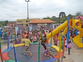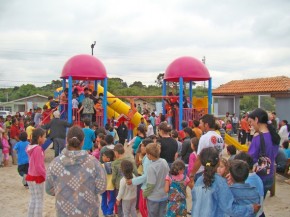 O prefeito Celso, a primeira-dama e vereadora Lindamir Wesnki e os demais vereadores presentes: Alda de Ramos Quevedo, Marcelo Filla, Oséias Lazarino, Celso de Sá Brito e Dionísio Meileneki , fizeram o sorteio e a distribuição de bicicletas e bolas de futebol ás 939 crianças presentes a grande festa