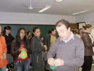 O grupo da Revista Amiguinhos trouxe a Palestra sobre Terapia da Felicidade que provocou muitos risos e também muita reflexão sobre três eixos para o ser humano estar bem e viver bem, são eles: a famÃlia, o trabalho e saúde. A equipe pedagógica municipal realiza orientações referentes ao segundo semestre para o retorno dos professores. O Prefeito Municipal o Jorge Quege agradece e parabeniza as professoras pelo trabalho e diz que acredita na evolução do paÃs somente com o trabalho da desenvolvido pela educação.