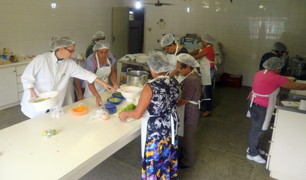 A capacitação “Produção Artesanal de Alimentos – básico em soja†foi realizada na Cozinha Industrial da APAE. Alguns conteúdos que serão passados durante o curso são: definição do manipulador de alimentos; perigos fÃsicos, quÃmicos e biológicos; qualidade da água; controle integrado de pragas; preparo dos alimentos: compra, armazenamento, pré-preparo, higienização, cocção dos alimentos e resfriamento; considerações gerais sobre: composição quÃmica, função e valor nutritivo da soja na alimentação humana; intoxicação alimentar; histórico sobre a cultura da soja; soja na alimentação humana e seus benefÃcios à saúde; entre outros.