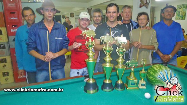 Um dos mais tradicionais campeonatos de bola de oito de riomafra, com a participação de 32 jogadores, com a duração de cinco meses, iniciou no dia 31 de maio, encerrando-se na última sexta-feira a noite, apontou o campeão da 8ª edição, numa bonita festa de encerramento, tendo por local o Bar do Mauricio, situado no bairro da Restinga.