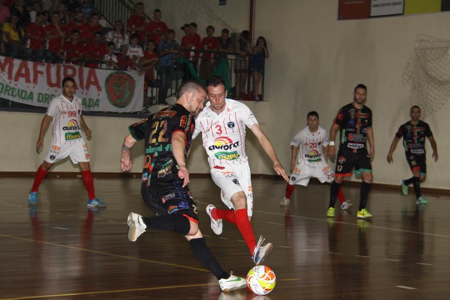 02 x 02 – Numa cobrança de escanteio aos 13min14seg, a equipe da Adesp/Pilhalzinho calou o torcedor no ginásio Wilson Buch, com o atleta Léo Roos.