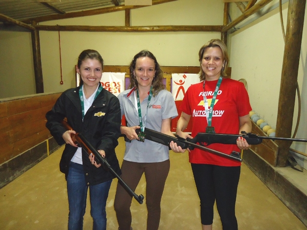 As três empresas destaques do tiro ao alvo feminino, Gislaine Adanceski da Auto Show Chevrolet (medalha de prata); Veridiana Witt das Calhas Vila Nova (medalha de ouro) e Cris ribeiro da Auto Show Chevrolet (medalha de bronze)