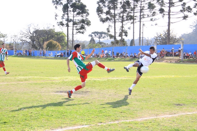 O meio campista Rafinha (direita), num bonito lance arremata para o gol da Vila Zelinda