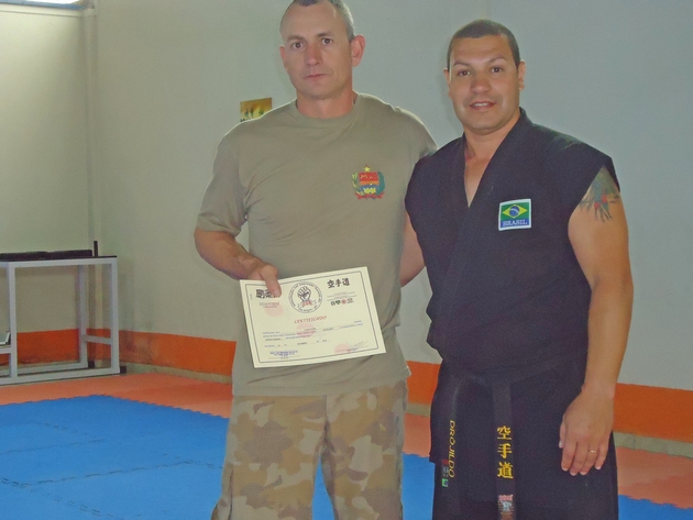 Sensei Drogilo Lima e o Sargento Flávio Kuss, comandante do Pelotão Tático da Policia de Mafra