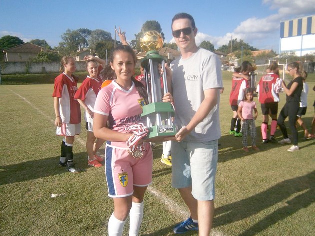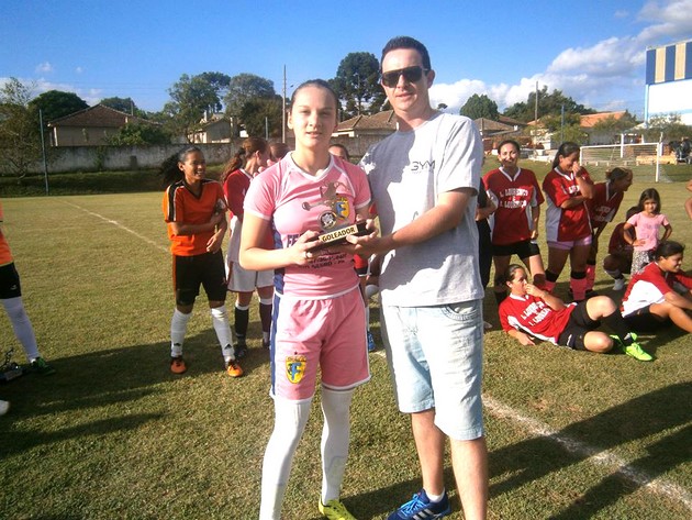 Paloma com 07 gols da Ferromax, recebendo o troféu de principal artilheira da Copa de Associação de Futebol SuÃço