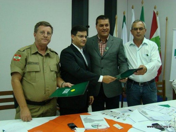 Coronel da Polícia Militar - Paulo César Rodrigues, Delegado Geral da Polícia Civil - Dr. Aldo Pinheiro D’Ávila; Vice-Presidente Regional da Facisc para o Planalto Norte – Gilmar F. Schneider e Presidente da ACIM – Nereu Martins Carvalho.