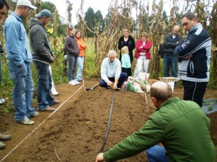 Após o almoço os agricultores realizaram atividades práticas, as maneiras corretas do plantio nos canteiros, as dimensões que devem ser utilizadas a o uso do “moucheâ€, que é uma espécie de um camaleão usado bastante nas lavouras do tabaco. Essa técnica impede que a água se acumule sobre o canteiro. A utilização de lona para que o morando não tenha contato com o solo e contraia doenças também foram esclarecidas.