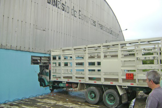 O caminhão estava no pátio da Furgás. Ao dar a partida o motorista desceu do veículo e o caminhão ficou ligado. Numa fração de tempo o veículo disparou do pátio, atravessou a Avenida Getúlio Vargas, caiu na mureta de proteção em frente ao ginásio e atingiu a parte da frente do prédio, onde funciona um vestiário. A intensidade do impacto derrubou a parede e a cabine do veículo ficou em meio aos escombros. Felizmente, não havia nenhum evento no ginásio, no momento do incidente. Ninguém se feriu.