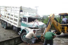 Além da PC, uma retro escavadeira da Prefeitura também auxiliou na retirada do caminhão, que ficou preso entre uma mureta em frente ao ginásio e a parede do prédio. Enquanto a retro escavadeira suspendia o chassi do veículo com um cabo de aço a PC fez o reboque. O caminhão ficou no próprio pátio do ginásio de esportes. A área foi isolada com fita zebrada, até a tomada de providências. A operação de retirada do caminhão durou cerca de 02h, e contou com a colaboração do secretário de Obras da Prefeitura, Claudinor Krajevski e também com apoio da Polícia Civil da Comarca. De acordo com funcionários da Furgás, não se sabe o motivo que levou o caminhão a disparar. Eles não souberam informar se o problema foi mecânico ou uma falha humana.