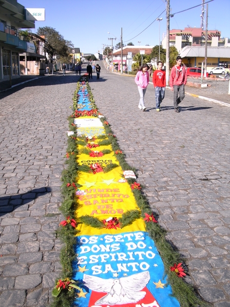Os tapetes de rua são uma tradição e manifestação artÃstica popular realizada por fiéis da Igreja Católica, confeccionados para a passagem da procissão de Corpus Christi.