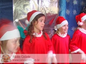 Na noite de quinta (09), centenas de crianças acompanhadas de familiares ocuparam o salão da igreja Matriz, que ficou completamente lotado para assistirem apresentações artísticas, queima de fogos e a chegada do papai Noel
