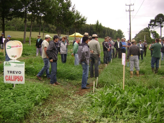 O Campo Tecnológico da Fadisol Semilha Sementes é um dos cinco implantados no Brasil, com objetivo de avaliar materiais novos antes de serem levados ao campo, já que a preocupação da empresa é trabalhar com variedades que se adaptem a região. Estamos avaliando e todos os produtores puderam observar em visita ao mesmo, cerca de 30 espécies incluindo, Festucas, Festulolium, Dactylis, Azevens Perenes, Anuais e algumas variedades de Tevo Branco e Vermelho, coordenado pelo responsável pelo desenvolvimento de pesquisa da empresa no Brasil, Giovane Cambrussi e Alessandro Stopa, Representante Comercial da Empresa para região.