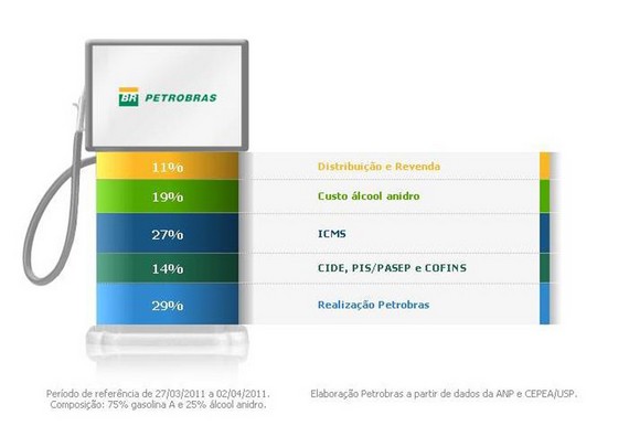 Impostos são os maiores pesos no valor final da gasolina. A margem de lucro de um posto de combustível é de apenas 5% do valor bruto, para a gasolina