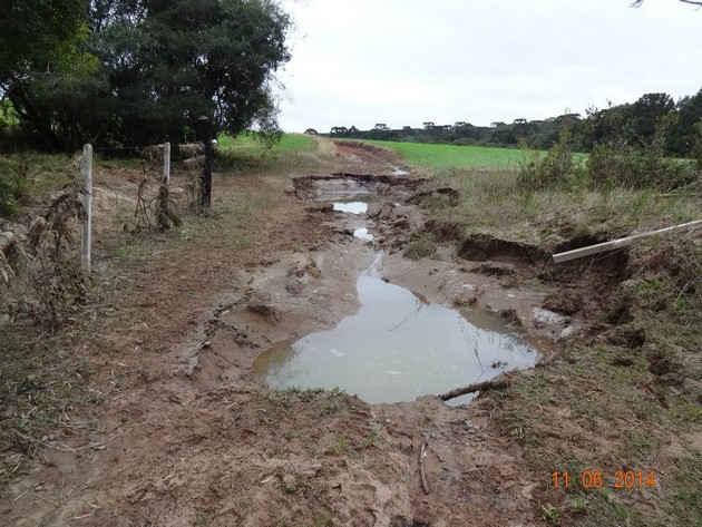 Das estradas municipais também não se tem nenhum dado ainda de quanto vai custar para recuperá-las, a Prefeitura homologou quatro decretos: para deslizamento, alagamento, tempestade local, chuvas intensas e por enxurradas, e através do Ministério da Integração, vai tentar buscar recursos, materiais, para restabelecer o município, que não teve tantos danos quanto a outros municípios da região. Porém pela sua extensa área rural, o interior é muito grande, assim os problemas são mais difíceis de ser contabilizados, a manutenção das estradas de chão é caras.