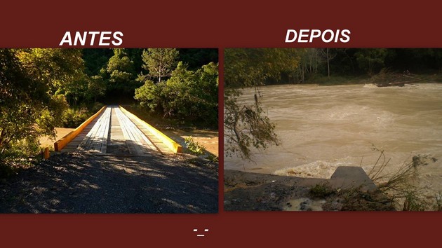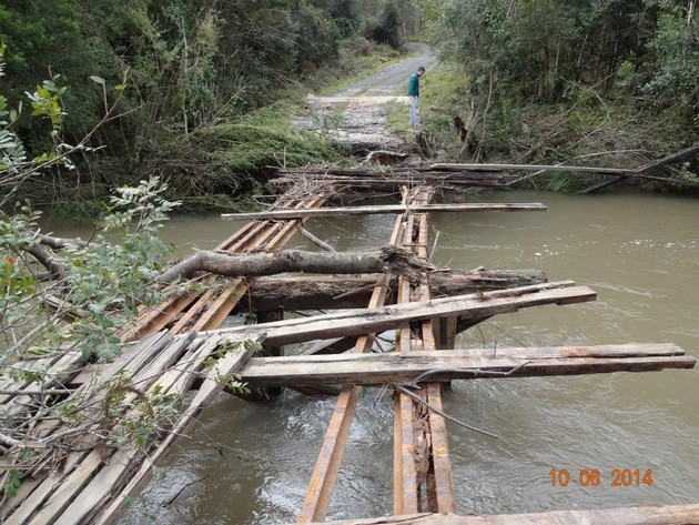A Defesa Civil também fez levantamento na parte da agricultura, e segundo os cálculos foram R$ 5.196.000,00 de prejuízo. Ainda com relação às pontes, não se pode mensurar o valor estimado, já que deve ser feito levantamento com um engenheiro da área.