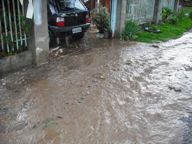 Em frente ao portão da garagem de dona Deolinda existe uma “boca de loboâ€, que foi instalada pela Prefeitura. Entretanto, devido ao volume das águas das chuvas a enxurrada da própria rua obstruiu o bueiro. De acordo com a moradora, a prefeitura de Itaiópolis já instalou por duas vezes tubulação de águas pluviais na via, mas, as manilhas são de 30 centÃmetros de diâmetro, portanto, insuficientes para drenar toda a água.