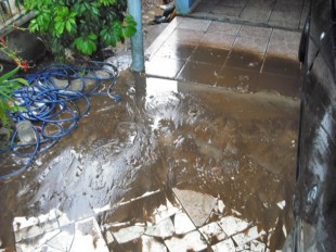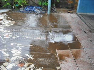 Basta chover com intensidade que dona Deolinda enfrenta o mesmo problema. Ãgua e lama na garagem e se descuidar tudo isso invade a sala da casa. “Há alguns anos a água chegou a entrar até dentro da minha cozinha, que funcionava antigamente onde hoje é a garagemâ€, comenta a moradora.