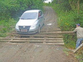 Rosane Semke, 28 anos, que vive na tifa reclama das condições das pontes. Na última semana, o veÃculo Fox da famÃlia caiu no entremeio dos pranchões de uma das pontes. Segundo a mulher, o madeiro das pontes está arruinado e precisa com urgência de conserto. Rosane questiona quem vai arcar com as despesas causadas no veÃculo, na queda, se o proprietário ou a Prefeitura? Os moradores aguardam providências do poder Executivo, para a reforma das pontes.