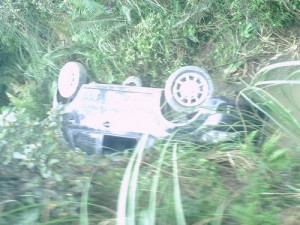 No dia 04 de outubro, por volta das 10h, o Corpo de Bombeiros Voluntários de Itaiópolis e a polÃcia militar foram acionados para atender um acidente de trânsito na rodovia SC-419, nas proximidades do antigo DER. Alceu Hack, 24 anos, conhecido pelo apelido de “Sucuriâ€, conduzia o veÃculo Ford/Fiesta, placas AKD de Mafra, no sentido bairro Paraguaçu ao Centro da cidade. No trecho do antigo DER perdeu o controle do carro; invadiu a pista contrária, bateu numa pedra e capotou numa ribanceira.