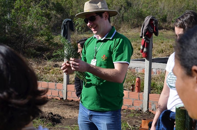 Antes de fazer o plantio das mudas nos litros, Rogério apresentou aos moradores as mudas das plantas medicinal. Os moradores demonstraram conhecimento e grande interesse pelas ervas. Mudas de alecrim, malva, boldo, manjerona, entre outras já foram plantadas na horta comunitária. Nos próximos dias o trabalho vai continuar.