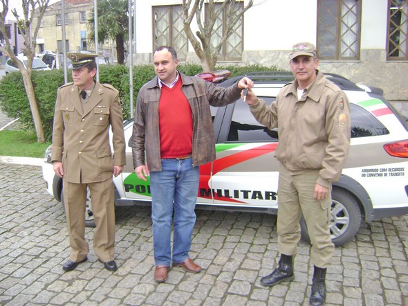 Aconteceu na manhã de ontem às 10 horas, em frente ao prédio da Prefeitura de Itaiópolis, a entrega da nova viatura para a polícia militar (PM) de Itaiópolis. Participaram da solenidade o comandante do Destacamento da PM de Itaiópolis sargento Alnor Ribeiro, o prefeito de Itaiópolis Helio Wendt (PMDB), o subtenente Décio José Müller Ribeiro representando o comandante da Guarnição Especial (GE) da Polícia Militar de Mafra e Osires José Grein, soldado PM da GE de Mafra. A nova viatura foi adquirida com recursos do convênio de trânsito e recebeu as placas MJB 7854, de Itaiópolis. Segundo o prefeito de Itaiópolis, foi uma honra poder presentear a PM de Itaiópolis com a nova viatura, que foi adquirida com muito esforço e economia. Segundo Wendt, do valor total de cada multa de trânsito gerada no município 35% do valor vai para a Prefeitura, 32,5 para a polícia militar e os outros 32,5 para a polícia civil. No entanto, a viatura para a PM foi adquirida com uma economia dos últimos cinco anos do valor de 32,5% exclusivamente da Polícia Militar.